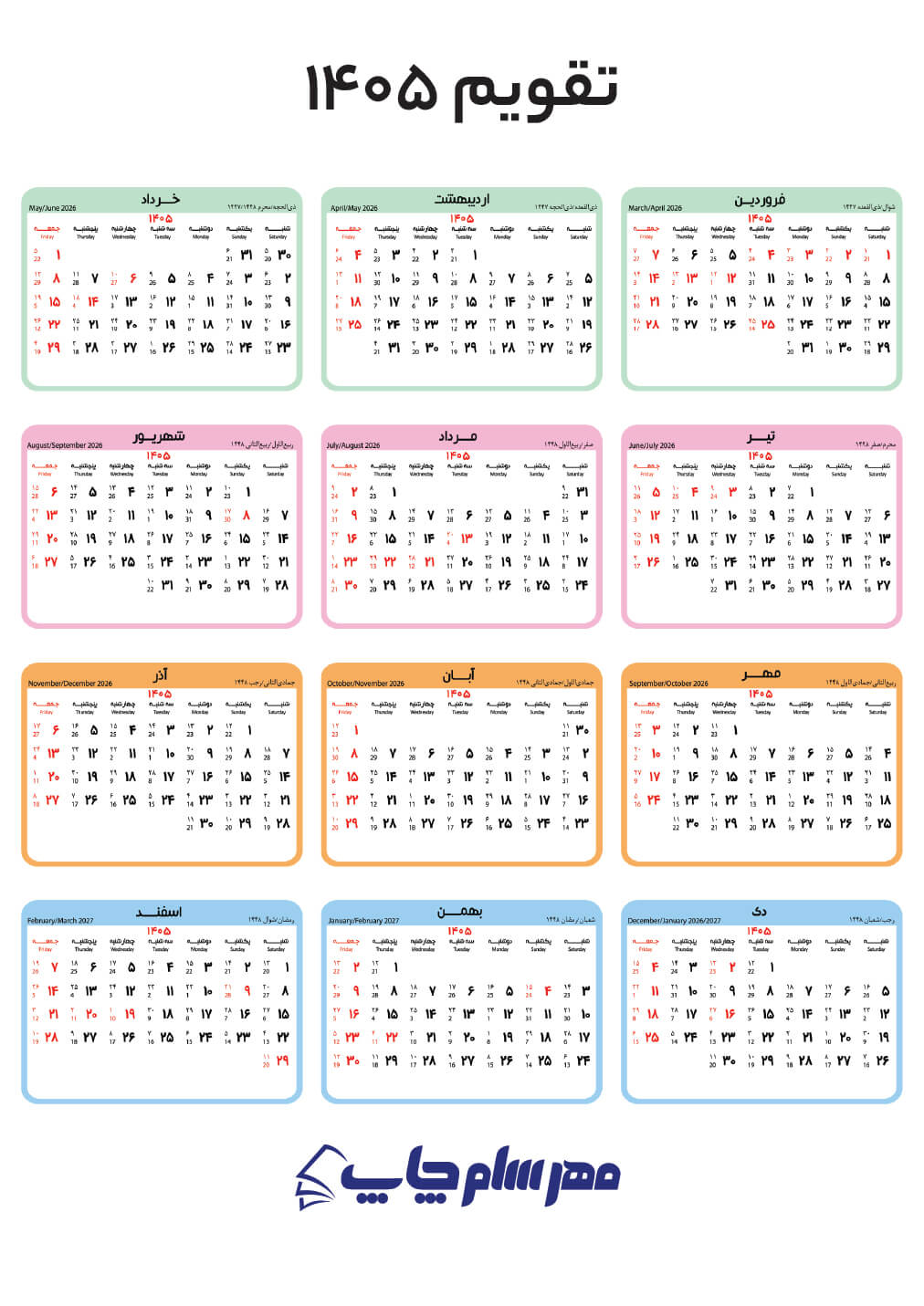 >>(برای دریافت فایل pdf تقویم ۱۴۰۵ کلیک کنید)<<